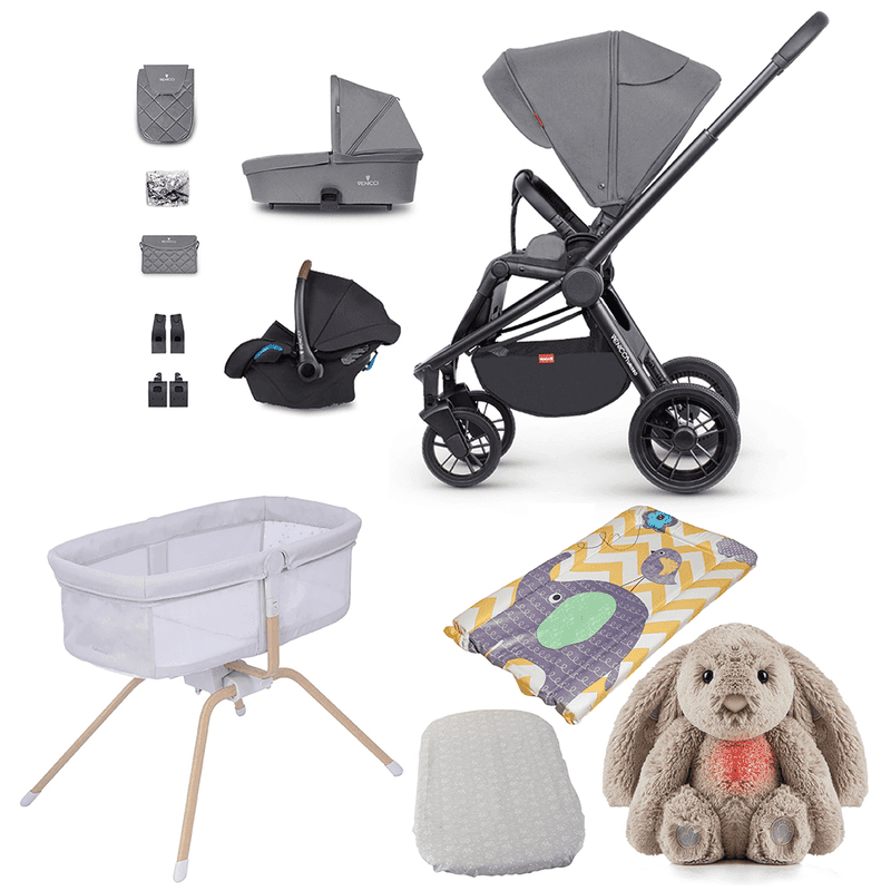 The New Parents Essential Bundle is a must have and it comes with all the essentials that you will need as a new parent. This unique bundle includes: Venicci Turisso 3 in 1 Travel System, Babymore Air Motion Crib, Callowesse Dreamy Willow, Callowesse Changing Mat and Crib Sheets.