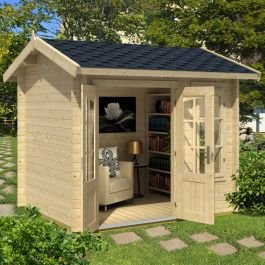 The Greenway 2.5m x 2m Mini Elizabeth Log Cabin is a high quality petit log cabin that is designed to fit in almost any garden. Double doors and opening window at the front of the building create a well ventilated, light interior during the summer whilst the double glazing and 44mm double tongue & groove cladding will help keep you warm during the winter months. 18mm tongue & groove floor and roof boards included and a cylinder lock is fitted to the doors as standard for additional security. Perfect for use as a home office or traditional summerhouse. Manufactured from certified sustainably sourced timber and come with our 5 year manufacturers warranty.