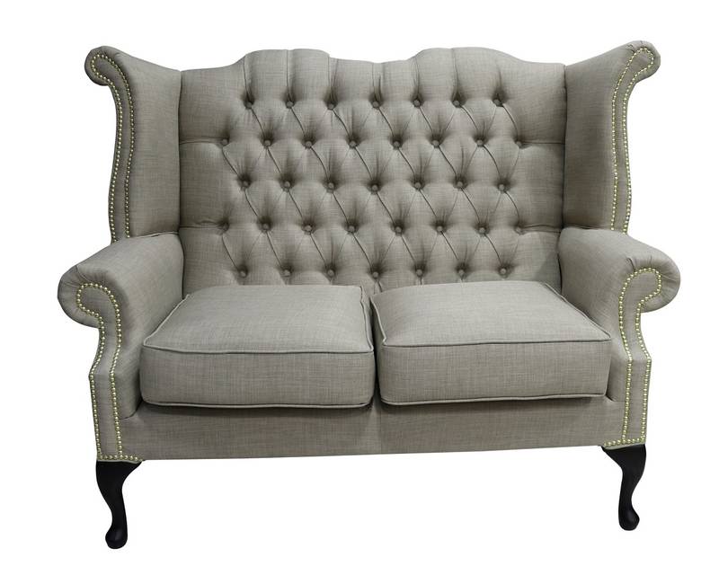 Chesterfield 2 Seater Queen Anne High Back Wing Sofa Charles Fudge Linen Fabric – Sale , 2404.05