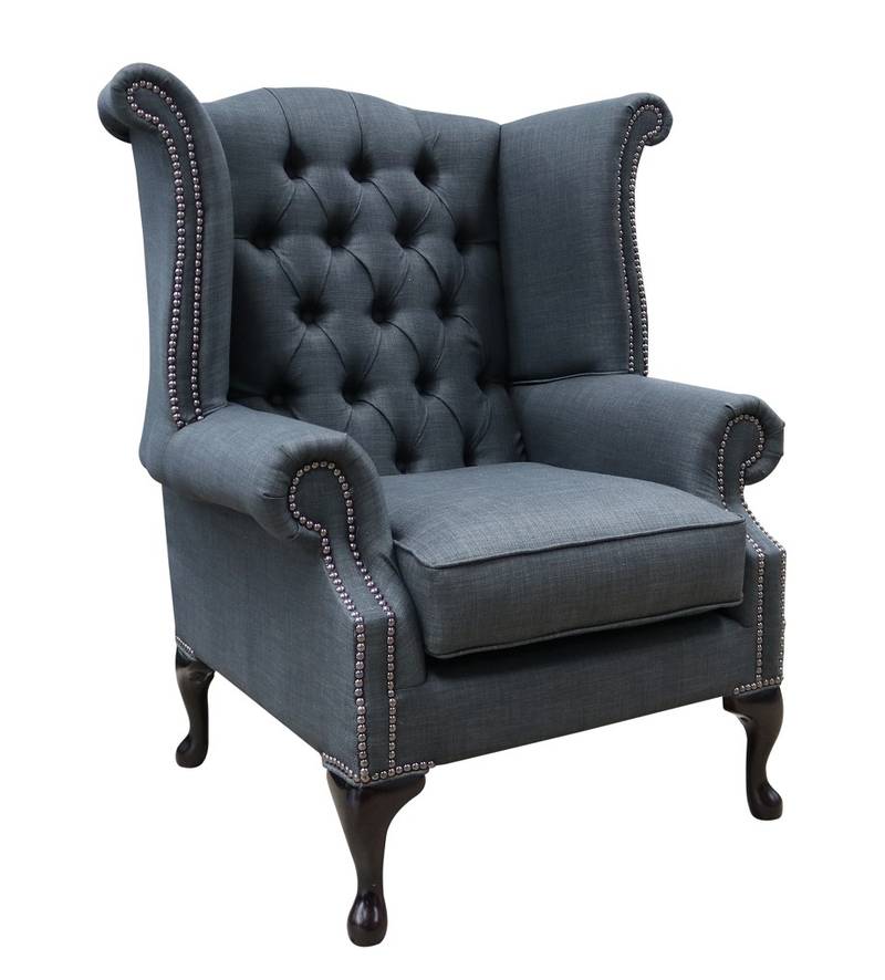 Chesterfield Queen Anne High Back Wing Chair Charles Grey Linen Fabric – Cheap , 376.07